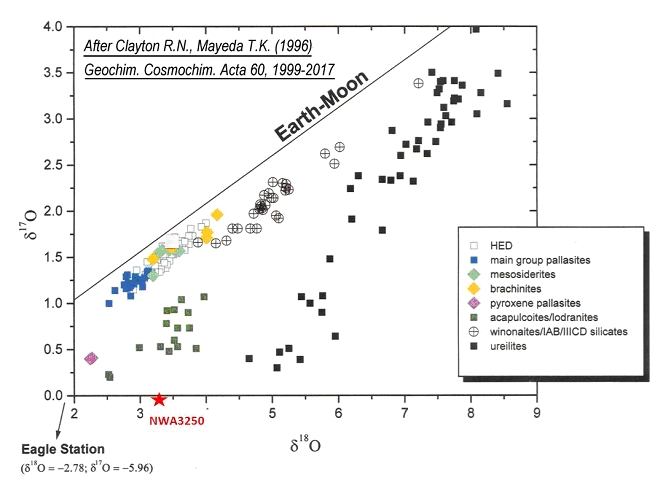von einem separaten Mutterkörper stammen. Die Sauerstoff-Isotopenwerte fallen zwar