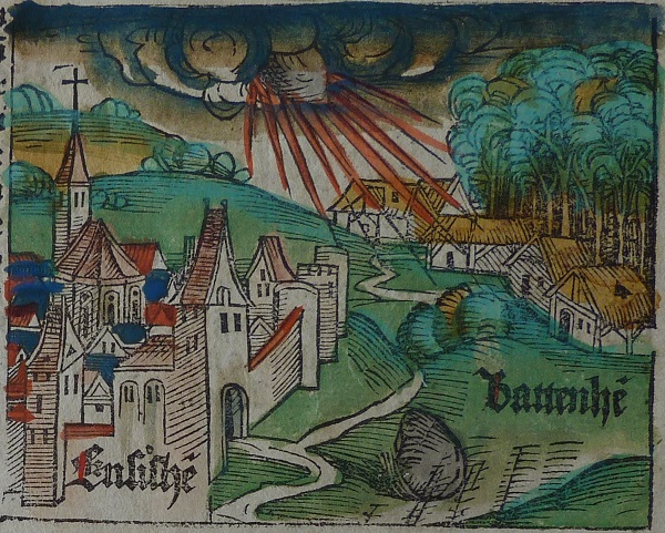 Eine zeitgenössische Darstellung des Meteoritenfalls findet sich auch in dem als "Weltchronik" bekannten Buch von Hartmann SCHEDEL von 1493: