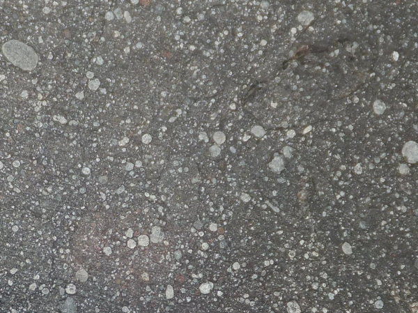 zahlreichen kleinen und einigen großen Klasten in einer feinkörnigen,