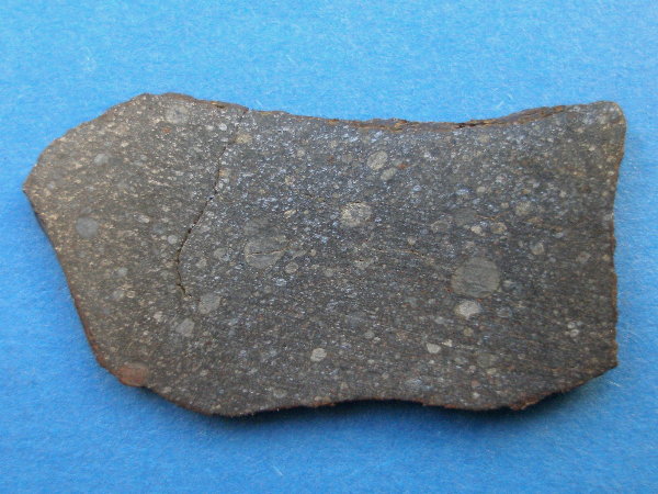 Das hier gezeigte Fragment enthält nach einer XRD-Analyse Enstatit, Olivin, Tridymit,