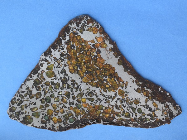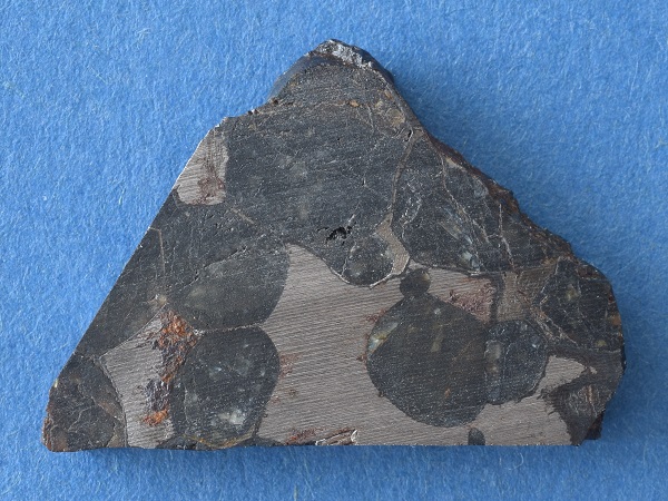 wurde als Pallasit identifiziert und besteht zu etwa gleichen Teilen aus Forsterit und Ni-Fe-Metall.