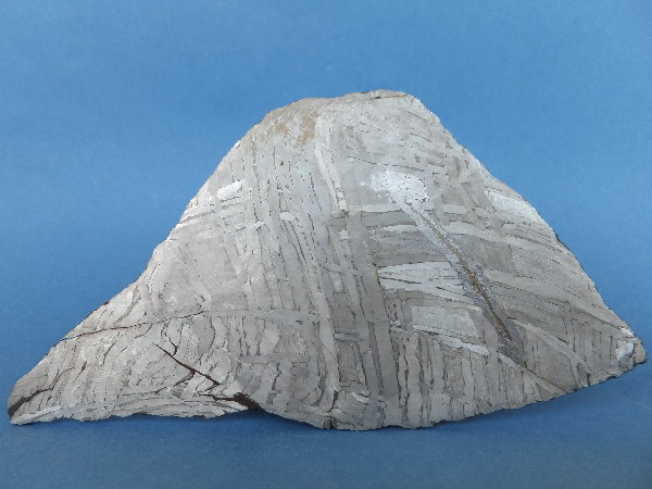 Detail einer Teilscheibe von 6,5 x 4,0 cm Größe, Gewicht 58 g. Widmannstättensche Figuren,