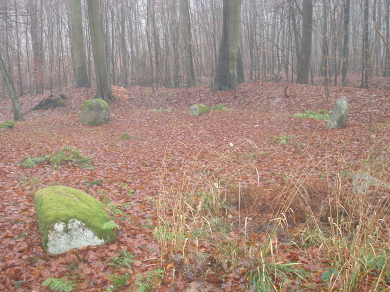 Steinkreise "Steintanz Boitin", Boitin bei Tarnow Von Tarnow aus fährt man in Richtung Schießplatz Boitin und dann weiter bis zum Waldrand. Hier gibt es Parkmöglichkeiten. Man folgt dem in westliche Richtung in den Wald führenden Weg, bis man unmittelbar nördlich des Weges drei Steinkreise und etwas schwieriger zu finden, südlich noch einen Kreis zu liegen hat. An den Steinkreisen steht eine Informationstafel. Die nördliche Gruppe besteht aus zwei großen Kriesen und einem kleinere. Die beiden großen weisen je 9 Steine und einen Durchmesser von 13,5 - 14 Metern auf. Nummeriert man die Kreise von Nord nach Süd, handelt es sich um Kreis 2 und 3. Der nördlichste und kleinste Kreis 1 weist gegenwärtig 7 Steine auf, ursprünglich können es eventuell 8 gewesen sein, wie eine größere Lücke andeutet. Sein Durchmesser beträgt etwa 7,5 Meter. Die Mittelpunkte der Kreise 1 bis 3 bilden ein gleichschenkliges Dreieck. Die Verbindung der Mittelpunkte von Kreis 1 und 2 geht - heute zumindest - in Nord-Süd-Richtung. Folgt man der Verbindung der Mittelpunkte von Kreis 1 und 3, stößt man nach etwa 150 Metern, unmittelbar hinter einem tiefen Graben, auf Kreis 4. Dieser kleine Kreis ist recht schlecht erhalten, fast keiner der Steine steht aufrecht. Die Kreise 1 bis 3 wurden 1890 durch den Revierförster Emil Jürgensen rekonstruiert. Er richtete am Boden liegende Steine wieder auf. Ob die heutigen Positionen tatsächlich die originalen Standorte wiedergeben, bleibt offen. Auffallend ist ein Stein im Kreis 2 ("Brautlade"), der zahlreiche keilförmige Vertiefungen aufweist. Gelegentlich wird dieser Stein als Kalenderstein gedeutet, in Wirklichkeit handelt es sich nur um neuzeitliche Keillöcher. Der Stein sollte längs gespalten werden, wozu es aber nicht mehr kam. Ein kleiner, nur noch fragmentarischer Stein von Kreis 1 zeigt ebensolche Löcher, er ist jedoch schon gespalten worden. Im Kreis 3 ist ein gespaltener Stein zu sehen, über den man den allerdings nicht sichtbaren Kreis 4 anvisieren könnte, und der deshalb öfter als Visurstein bezeichnet wird. Auch hier wird es sich wohl um einen neuzeitlich gespaltenen Stein handeln. Zur Funktion der Anlage gibt es erheblich differierende Ansichten. Nach einer Ausgrabung durch R. Beltz 1929, bei der Urnen gefunden wurden, werden die Steinkreise als eisenzeitliche Begräbnisstätten um 600 - 400 v.d.Z. gedeutet. Nach anderen Ansichten handelt es sich um eine ältere Anlage, die astronomische Orientierungen aufweist und kultischen Zwecken diente und als Begräbnisplatz nachgenutzt wurde. Archäologische Belege für eine ältere Entstehung fehlen jedoch. Zu dem Steintanz gibt es eine Sage, die hier nach der Informationstafel wiedergegeben wird: "Das Dorf Dreetz lag früher in der unmittelbaren Nähe des Steintanzes. Einst wurde in Dreetz eine prächtige Bauernhochzeit gefeiert. Es ging hoch her und alle waren lustig und vergnügt. In ihrem Übermut kamen einige Bauern auf den Gedanken, mit Würsten, Brot und Kuchen Kegeln zu spielen. Bevor sie damit begannen, ermahnte sie ein Geist der in Gestalt eines alten Mannes bei dem Fest erschien. Er forderte sie auf, diesen Frevel zu beenden. Die Bauern hörten aber nicht auf ihn und verspotteten in ihrem Übermut den alten Mann. Zur Strafe wurden darauf alle Festteilnehmer in Steine verwandelt (Großer Steintanz). In der Nähe des Festplatzes hütete ein Schäfer mit seinem Hund eine Herde Schafe. Er hatte dem Festgeschehen zugeschaut, sich aber nicht an dem Kegelspiel beteiligt. Er war dann von dem alten Mann aufgefordert worden, sofort mit seinen Schafen zu fliehen und sich dabei nicht umzusehen. Der Schäfer befolgte den Rat des Geistes. Als er dann schon ein Stück vom Festplatz fort war, ließ ihn die Neugierde nicht ruhen. Um das Verbot zu umgehen (sich nicht umzusehen) bückte er sich und und sah zwischen seinen Beinen durch. Im gleichen Augenblick wurden er, sein Hund und die Herde auch zu Stein (Kleiner Steintanz). Am Johannestag (24. Juni) soll aus der Brautlade (12. Loch des größten Steins) ein roter Faden heraushängen. Wer Mut hat, ihn um Mitternacht herauszuziehen, kann all die erlösen und den Schatz der in der Brautlade liegt, behalten." Koordinaten, Kreise 1 - 3 (GPS gemessen): 53.77178° N, 11.95476° E (WGS84). Koordinaten, Kreis 4 (GPS gemessen): 53.77098° N, 11.95632° E (WGS84).