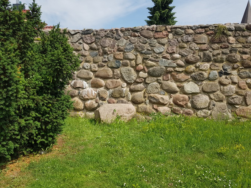 umgesetzter Schleifbahnenstein (Polissoir), Pasewalk Sprockhoff: ---. Der Stein wurde im Januar 2020 bei Grabungen an der Trasse der Europäischen Gaspipeline (EUGAL) gefunden. Er wurde nach Abschluss der Arbeiten dem Stadtmuseum Pasewalk übergeben und ist in dessen Außenbereich aufgestellt. Der Stein findet sich im Museumsgarten, Höhe Gartenstraße 36, unmittelbar südlich (außerhalb) der Stadtmauer, südöstlich vom Prenzlauer Stadttor. Es gibt (Stand Juni 2025) kein Hinweisschild oder Schild mit Erklärungen. Schleifbahnensteine werden auch als Polissoir bezeichnet. Bei dem Stein handelt es sich um einen Granitblock von 1,4 x 1,3 x 1 m Abmessung und etwa 3 Tonnen Masse. Er weist drei Schleifbahnen von etwa 4 cm Tiefe sowie 12-18 cm Breite und 34-48 cm Länge auf. Es handelt sich eindeutig um künstlich angelegte Strukturen und keine natürlichen Bildungen. Sie sind sehr wahrscheinlich durch das Schleifen von Steinbeilen entstanden. Der Stein wurde in einem Gräberfeldareal gefunden, so dass eine kultische Nutzung durchaus möglich ist. Weiterhin wurde nur 470 m nördlich auf dem Fundplatz Pasewalk 36 ein sehr großer Schalenstein gefunden, der nach Abschluss der Grabungen jedoch wieder vergraben wurde. Eine Einbindung der beiden Steine in das lokale Kultgeschehen während der Bronzezeit ist deshalb durchaus denkbar. Die Schleifbahnen werden als neolithisch bis bronzezeitlich eingeordnet. Quelle: www.kulturwerte-mv.de/Landesarchaeologie/Fund-desMonats Koordinaten (GPS gemessen): 53.50134° N, 13.98803° E (WGS84).