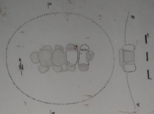 aufliegen sondern abgeschoben sind. Der nordöstliche Tragstein fehlt. Der Zugang befand sich in